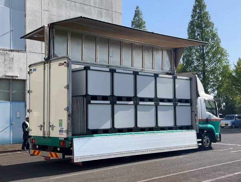 例えば、組み立て式の軽量物流容器「スリーブボックス」などを用いて輸送品の体積を減らせば、同じトラックで運べる数量が増え、車両台数や走行距離の削減につながります。