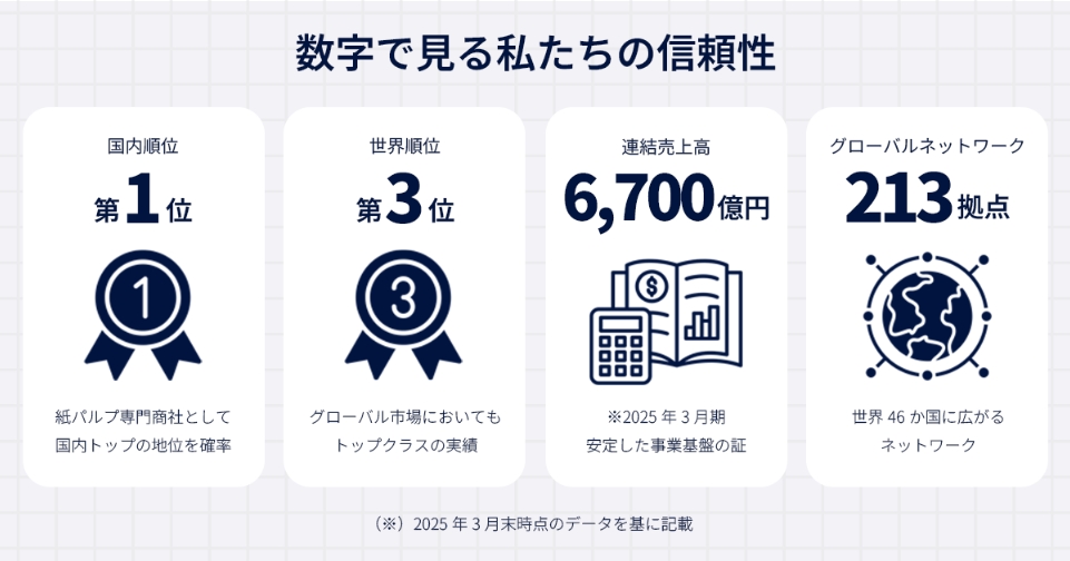 事業内容 紙・板紙・紙加工品・パルプ・古紙・化成品・紙関連機械・包装資材等の売買及び輸出入 等