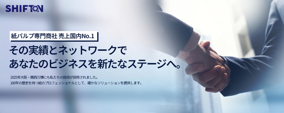 「SHIFT ON」は、紙パルプ専門商社として国内No.1、世界No.3の実績(※)を誇る国際紙パルプ商事が運営するソリューション提案サイトです。